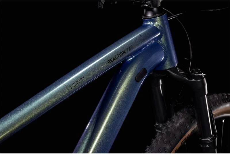 En la descripción técnica de la Cube Reaction Pro podemos empezar a destacar su cuadro de Aluminium Lite, su elegante estética se debe a las soldaduras lisas de la junta del tubo de dirección y del sillín, con la elección de la pintura y estos acabados tan finos es cuando se aprecia que un fabricante hace las cosas con amor y cuidado y eso transmite al cliente final calidad y seguridad a la hora de comprar un producto.