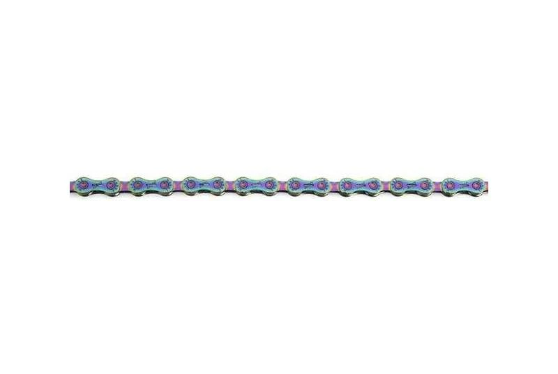 Cadena Massi Rainbow M1229, compatible con cassettes Shimano y Sram de 12 velocidades. Construida con 118 eslabones, con uno rápido incluido para montar y desmontar fácilmente.