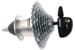 DualDrive de SRAM es un tren de transmisión único que combina un cubo de engranaje interno de tres velocidades con un cassette externo y un cambio. El resultado es una amplia gama de engranajes en un sistema de control limpio y con una sola mano. La palanca de cambios DualDrive presenta un movimiento de cambio de agarre para el cambio trasero y un gatillo que controla los cambios de marcha en el buje interno.