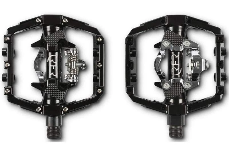 Para la práctica del MTB necesitamos versatilidad, rendimiento, resistencia y durabilidad; bastante duras son ya las condiciones a las que nos enfrentamos. Los pedales mixtos Cube RFR Flat & Click nos brindan una gran plataforma de apoyo, una fluidez de giro alta y una facilidad enorme para calar y descalar los pies. Cuenta con una parte plana que incluye antideslizantes reemplazables y otra cara compatible con calas SPD.
