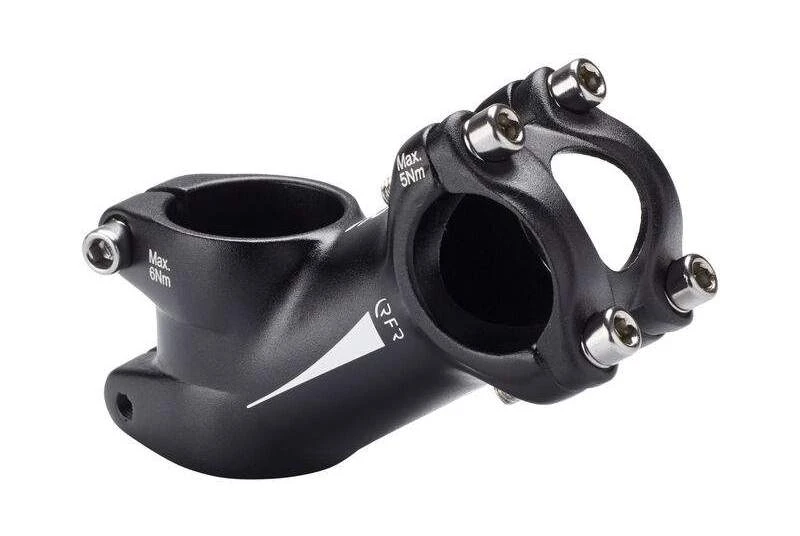 La potencia Cube RFR está fabricado en aluminio forjado en 3D. La potencia certificada según la norma EN garantiza la máxima seguridad del ciclista. La abrazadera del vástago se instala mediante cuatro tornillos y conecta el vástago con la barra.