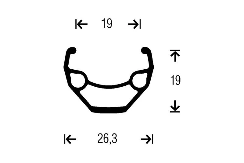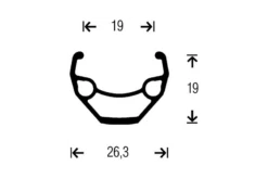 - – Llanta negra Gurpil de 27,5″ con 19mm de perfil interior, 26,3mm de exterior y 19mm de altura